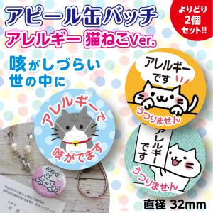 アレルギーバッジ アレルギーバッチ アレルギー アピール コロナ対策 猫 かわいい バッジ 通勤 通学 買い物 よりどり2個 32mm