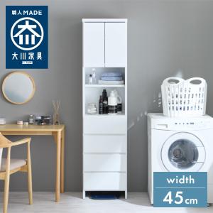 ランドリー収納 完成品 国産 幅45cm 薄型 ハイタイプ 収納 隙間収納 ランドリーラック ストッパー付き引き出し オープン棚板 耐震ダボ チェスト