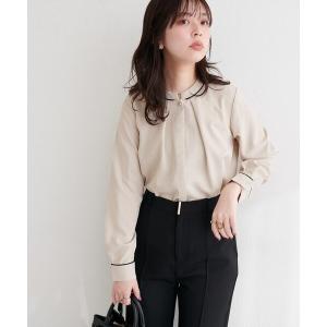 ブラウス シャツ スタンドカラーパイピングブラウス レディース