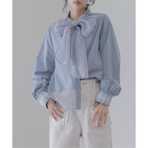 ブラウス シャツ ボウタイカフスレースブラウス レディース