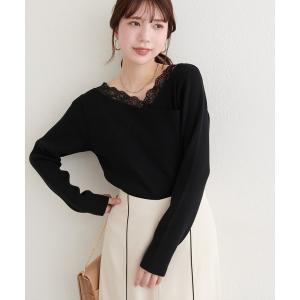 ニット セーター アシメレースネックリブニットプルオーバー レディース