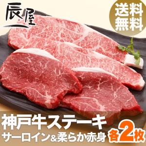 神戸牛 サーロイン & 柔らか赤身 ステーキ 各2枚 送料無料 牛肉 ギフト 内祝い お祝い 御祝 お返し 御礼 結婚 出産 グルメ 爆買