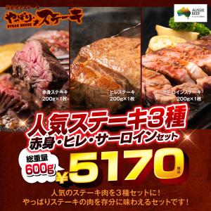 やっぱりステーキ 人気ステーキ3種セット(赤身・ヒレ・サーロイン)総重量600g