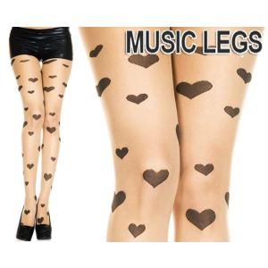 MusicLegs(ミュージックレッグ) ハートプリント シアーストッキング/タイツ 7399 ベージュ /ブラック ウェディング パーティー ダンス衣装