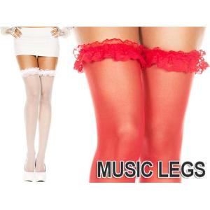MusicLegs(ミュージックレッグ) ラッフルレーストップ シアーサイハイストッキング/タイツ4107 オーバーニーハイソックス発表会レッドホワイト赤白レディース