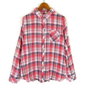 アースミュージック&エコロジー シャツ ブラウス シアー シフォン マドラスチェック コットン ストレッチ 長袖 M 赤 マルチカラー