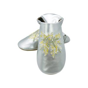 ☆ ミモザ×シルバー ☆ エンブロイダリーバブーシュ バブーシュ スリッパ 2way ルームシューズ 部屋履き 室内履き