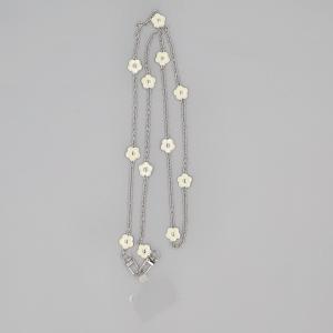 ☆ アイボリーxシルバー ☆ ロングフラワーモチーフストラップ リボーンカンパニー ストラップ スマホストラップ 携帯電話用ストラップ