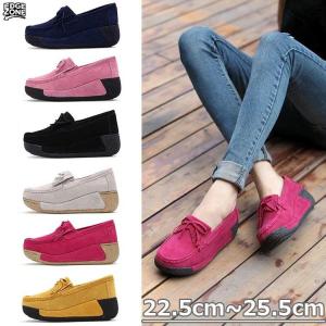 【送料無料】モカシン 厚底 レディース 本革 スウェード シューズ ぺたんこ 5cm シープスキン ボア ムートン カジュアル おしゃれ ふかふか 黒 靴 シューズ くつ