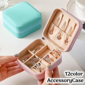 アクセサリーケース ジュエリーボックス 小物入れ コンパクト 小さめ 携帯 持ち歩き 四角形 スクエア フック 仕切り おしゃれ 可愛い レザー調 無