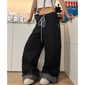 ジーンズ デニム デニムパンツ 「LAMPOON」ドットブラックデニムパンツ レディース