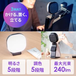 ストリーミングLEDライト 3WAY かける 置く 立てる 明るさ5段階 色温度5段階 最大240ルーメン 充電式 三脚対応 EZ8-LED066