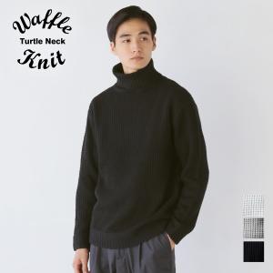 ニット タートル ワッフルニット メンズ 冬 ワッフル 編み タートル アクリル ニット ブラック グレー ホワイト