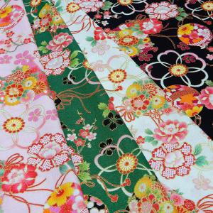 ちりめん生地 金彩 はぎれ 和柄 カットちりめん かすみと花 金閣 35cm×33cm 縮緬生地 京ちりめん レーヨン 布 布地 プリント メール便10枚まで 爆買