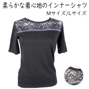 (ポスト投函 送料無料) セシール Mサイズ レーシー半袖Tシャツ レディース インナー UP707ブラック