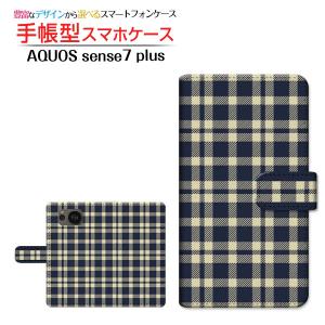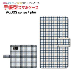 カメラ穴対応 手帳型 AQUOS sense7 plus ケース アクオス センスセブン プラス カバー A208SH スマホケース チェック柄ネイビー×クリーム