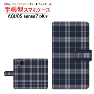 カメラ穴対応 手帳型 AQUOS sense7 plus ケース アクオス センスセブン プラス カバー A208SH スマホケース チェック柄ネイビー×ブラウン