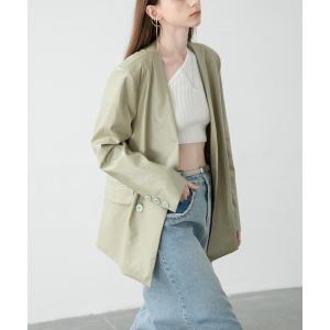 ジャケット ノーカラージャケット 「 EKCOOKIES 」フェイクレザーダブルブレストノーカラージャケット レディース
