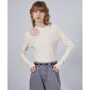 tシャツ 「ELOOPS」ダメージカットオフリブロングスリーブトップス レディース