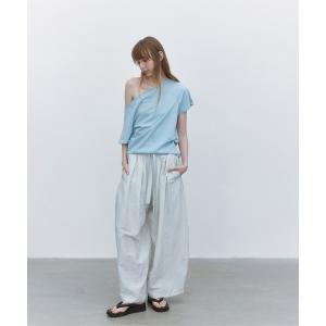スラックス パンツ 「ELOOPS」レース切替リネンコットンギャザーパンツ レディース
