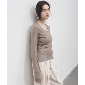 tシャツ 「tageechita」レイヤード風 Uネックボーダープルオーバー(テンセル×ウール混) レディース