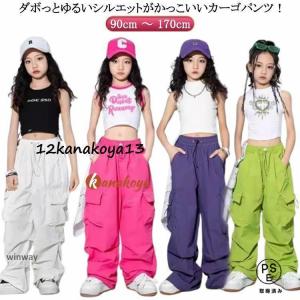 キッズ ジャズダンス衣装 ダンス衣装 カーゴパンツ 女の子 ヒップホップ 赤 ジュニア 黒 緑 子供 パンツ ピンク ダンス