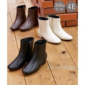 ブーツ 靴 4E 幅広 ゆったり ワイド 大きいサイズ シンプル ショートブーツ スクエアトゥ チャンキーヒール ローヒール 3.5cm (アクアカルダ 送料無料)