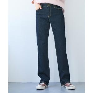 ジーンズ デニム デニムパンツ 「大きいサイズ」すごのびストレッチデニムストレートパンツ(ゆったり太もも)「股下68cm」 レディース