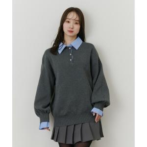 ニット セーター シャツドッキングポロニット レディース
