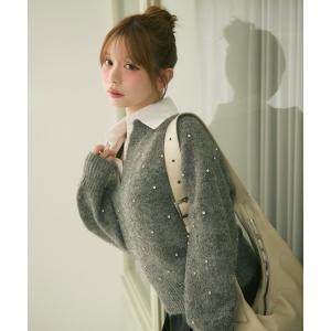 ニット セーター シャツドッキングビジュー付きニット レディース