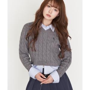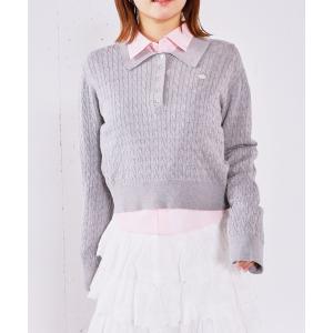 ニット セーター シャツ襟ケーブルニット レディース