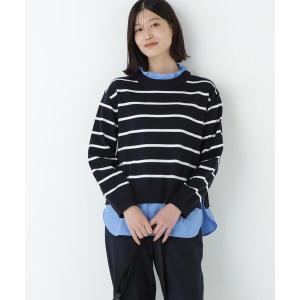 ニット セーター シャツ地ドッキングプルオーバー レディース