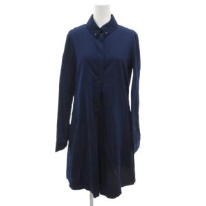 フォクシーニューヨーク FOXEY NEW YORK シャツワンピース ハーフボタン 長袖 ひざ丈 40 紺 ネイビー 35069 /JS ■GY62 レディース