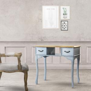 ネイルテーブルガラス板なし【ブルーグレー】ネイルデスク ネイルサロン 猫脚 ネコ脚 おしゃれ 収納 引出付き 配線穴付き 木製 アンティーク エレガント 高さ75