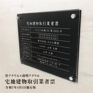 宅地建物取引業者票(令和7年4月1日施行版) 透明アクリル×黒アクリル 宅建 不動産 看板 標識 法定看板 H35×W45cm tk-acryl01b