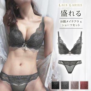 谷間メイク ブラ&ショーツ 2点セット ブラック モカ ワインレッド グリーン ノンワイヤーブラ レース ブラジャー 可愛い レディース