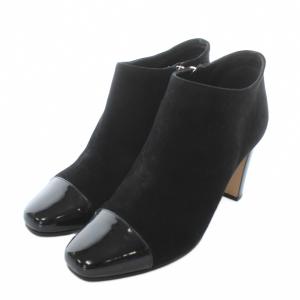 マックスマーラ MAX MARA ショートブーツ スエード エナメル 切り替え ラウンドトゥ ハイヒール 38 24.5cm 黒 ブラック