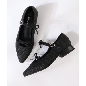 パンプス ポインテッドトゥ ダブルリボン メリージェーン パンプス