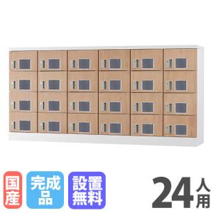 設置無料 ロッカー 24人用 窓付き 鍵なし 木目 シューズロッカー スチールロッカー オフィス収納 二十四人用 24人用ロッカー 備品ロッカー GLK-K24YW-NT