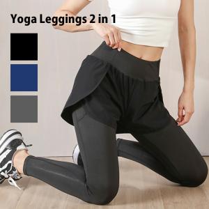 ヨガ レギンス ウェア パンツ付 スパッツ レディース ストレッチ フィットネス ピラティス トレーニング エクササイズ 筋トレ ロング丈 シンプル KAN001078
