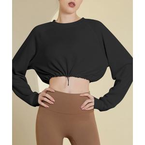 レディース 長袖クロップド丈ドローコードヨガウェアピラティストップス レディース