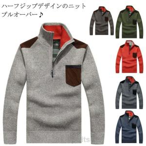 ニット セーター メンズ ハーフジップ 裏起毛 暖い プルオーバー リブ袖 厚手 秋冬 ゆったり 防寒 暖かい あったか トレーナー カジュアル ファ