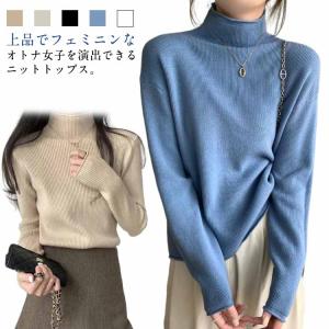 春 冬 ニット ハイネック レディース 暖かい シンプル 長袖 秋 トップス 薄手 無地 きれいめ リブニット セーター おしゃれ オフィス 韓国ファ