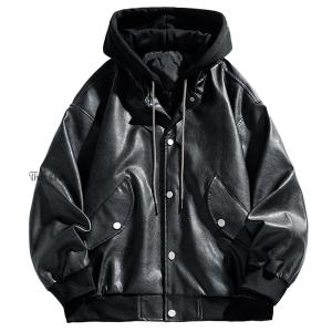 【送料無料】メンズ レザージャケット ライダースジャケット レザーコート 革ジャン フード付きパーカー M-4XL 大きいサイズ 防寒 防風 バイク カジュアル ファ