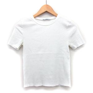 ザラ トラファルック ZARA Trafaluc リブ カットソー 柄編み シンプル 半袖 丸首 M ホワイト 白 /HT22 レディース