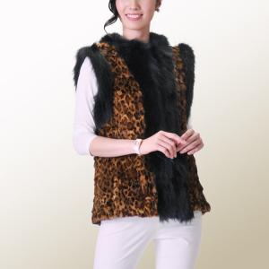 毛皮/ファーベスト/1点もの ミンク ベスト フォックス トリミング アニマル柄 着丈67cm / レディース 送料無料