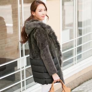 ファー付 ウールコート /毛皮/ミンク&レッキス&ウールレイヤードコート 八分袖 ボトルネックデザインファーコート 秋冬 毛皮コート