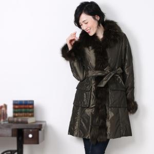 ファー付きコート コート フォックス トリミング ベルト付き レディース 中綿入り シルバーフォックス (02000073r)