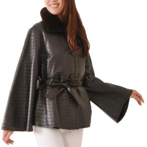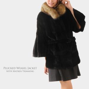 毛皮/プラクト ウィーゼル ジャケット マーテン トリミング ベルト付き ファーコート