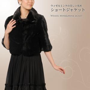 ファー/毛皮ジャケット/ジャケットシェアードウィゼルミンク ショート ジャケット 七分袖 ミンク衿
